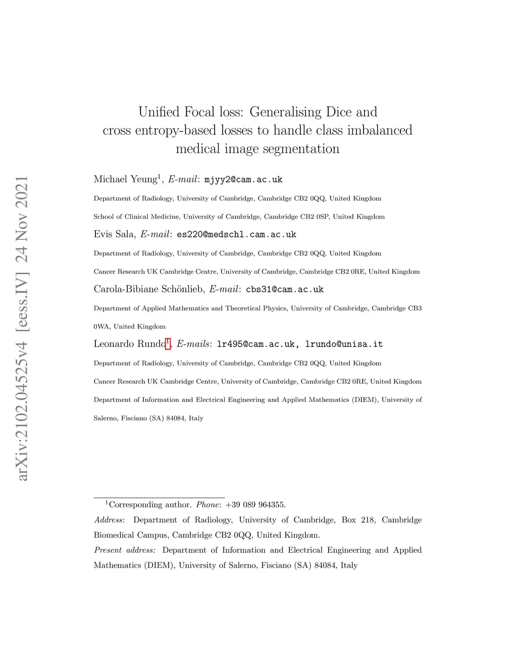 Unified Focal loss: Generalising Dice and cross entropy-based losses to