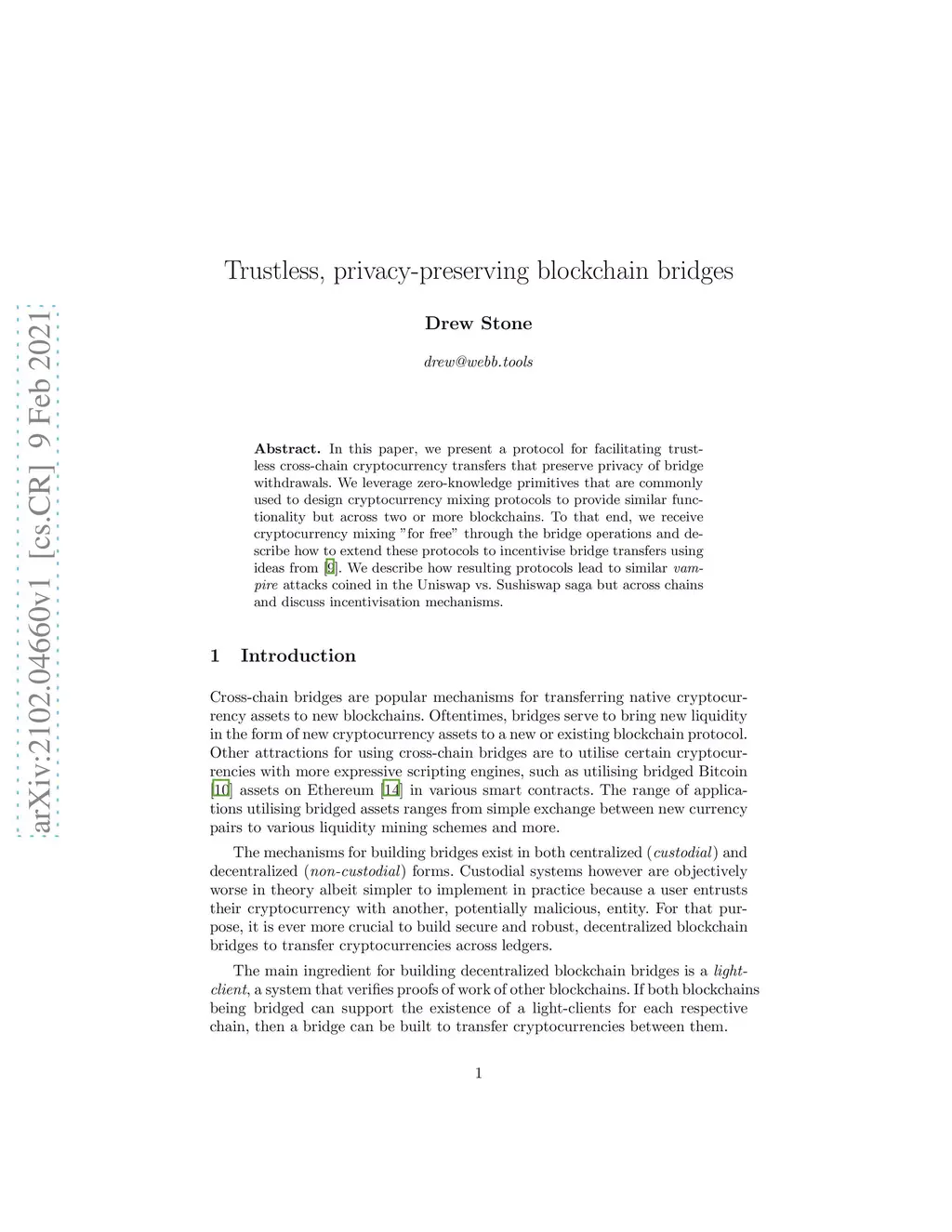 In this paper, we present a protocol for facilitating trust-less cross-chain cryptocurrency transfers that preserve privacy of bridge withdrawals. We leverage zero-knowledge primitives that are commonly used to design cryptocurrency mixing protocols to provide similar functionality but across two or more blockchains. To that end, we receive cryptocurrency mixing for free through the bridge operations and de-scribe how to extend these protocols to incentivise bridge transfers using past ideas. We describe how resulting protocols lead to similar vampire style attacks coined in the Uniswap vs. Sushiswap saga but across chains.
