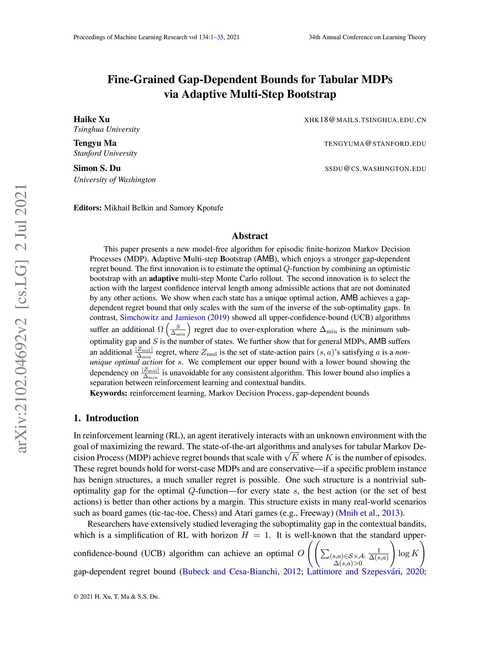 This paper presents a new model-free algorithm for episodic finite-horizon Markov Decision Processes (MDP), Adaptive Multi-step Bootstrap (AMB), which enjoys a stronger gap-dependent regret bound. The first innovation is to estimate the optimal -function by combining an optimistic bootstrap with an adaptive multi-step Monte Carlo rollout. The second innovation is to select the action with the largest confidence interval length among admissible actions that are not dominated by any other actions. We show when each state has a unique optimal action, AMB achieves a gap-dependent regret bound that only scales with the sum of the inverse of the sub-optimality gaps. In contrast, Simchowitz and Jamieson (2019) showed all upper-confidence-bound (UCB) algorithms suffer an additional regret due to over-exploration where is the minimum sub-optimality gap and is the number of states. We further show that for general MDPs, AMB suffers an additional regret, where is the set of state-action pairs 's satisfying is a non-unique optimal action for . We complement our upper bound with a lower bound showing the dependency on is unavoidable for any consistent algorithm. This lower bound also implies a separation between reinforcement learning and contextual bandits.