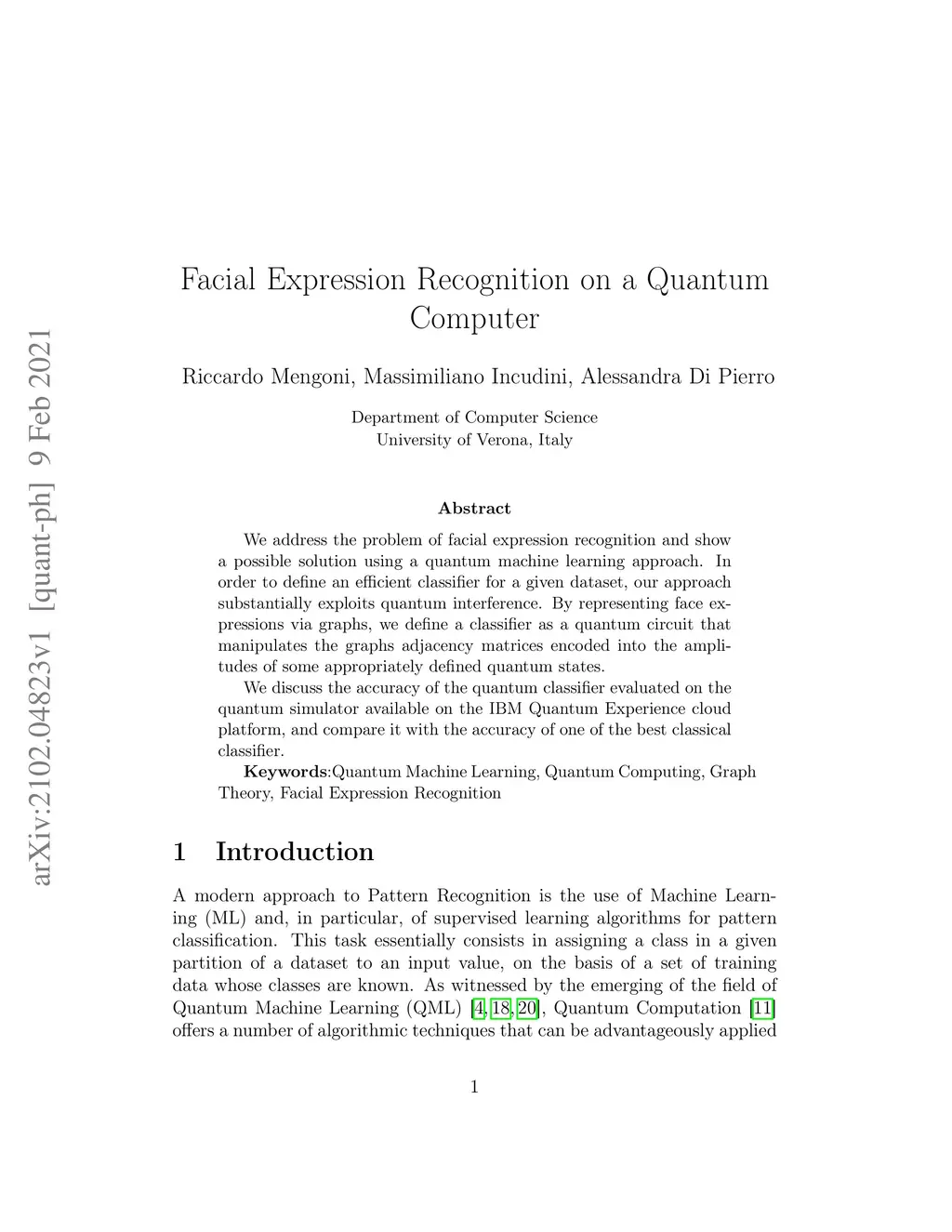 Facial Expression Recognition on a Quantum Computer