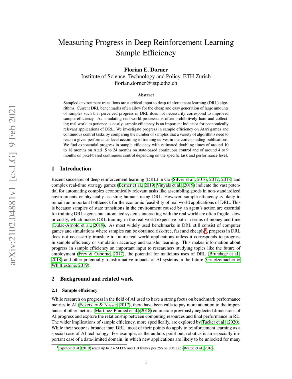 Measuring Progress in Deep Reinforcement Learning Sample Efficiency