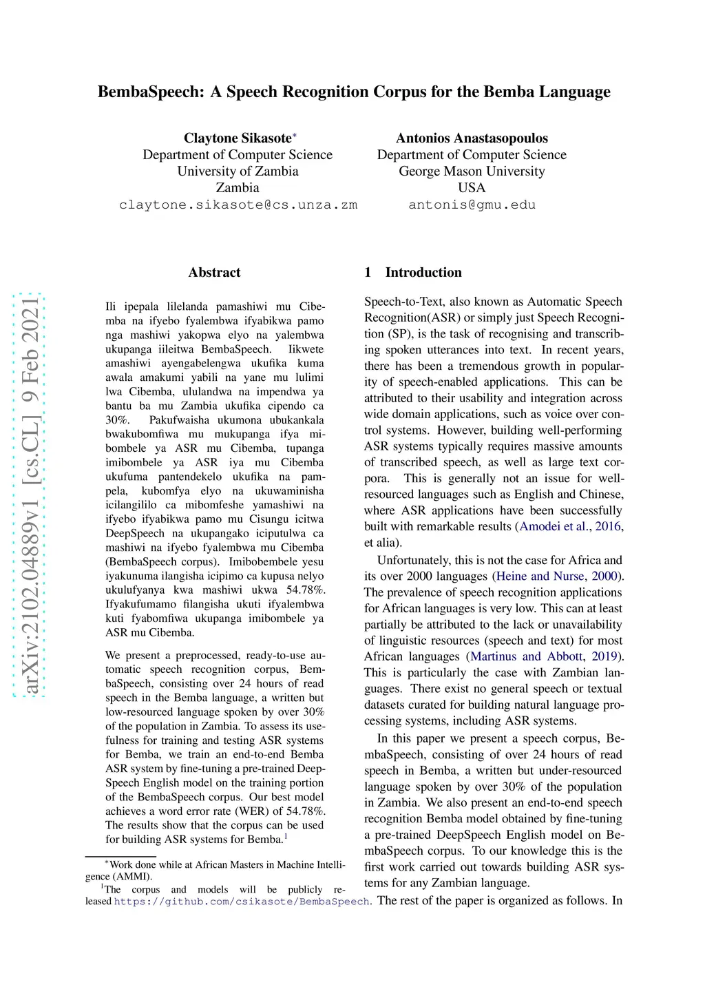 BembaSpeech: A Speech Recognition Corpus for the Bemba Language