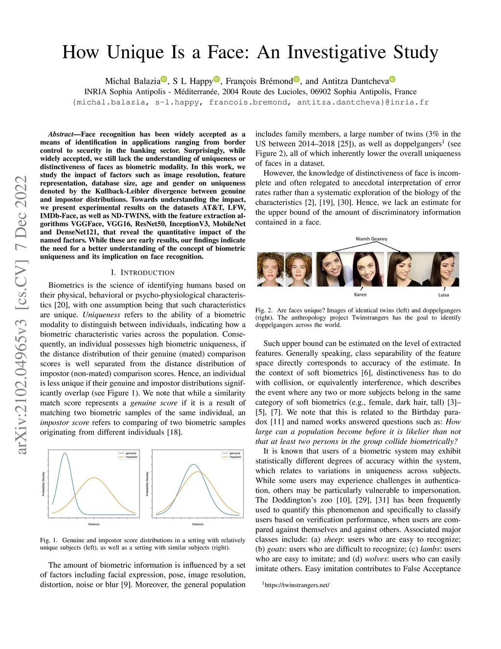 How Unique Is a Face: An Investigative Study