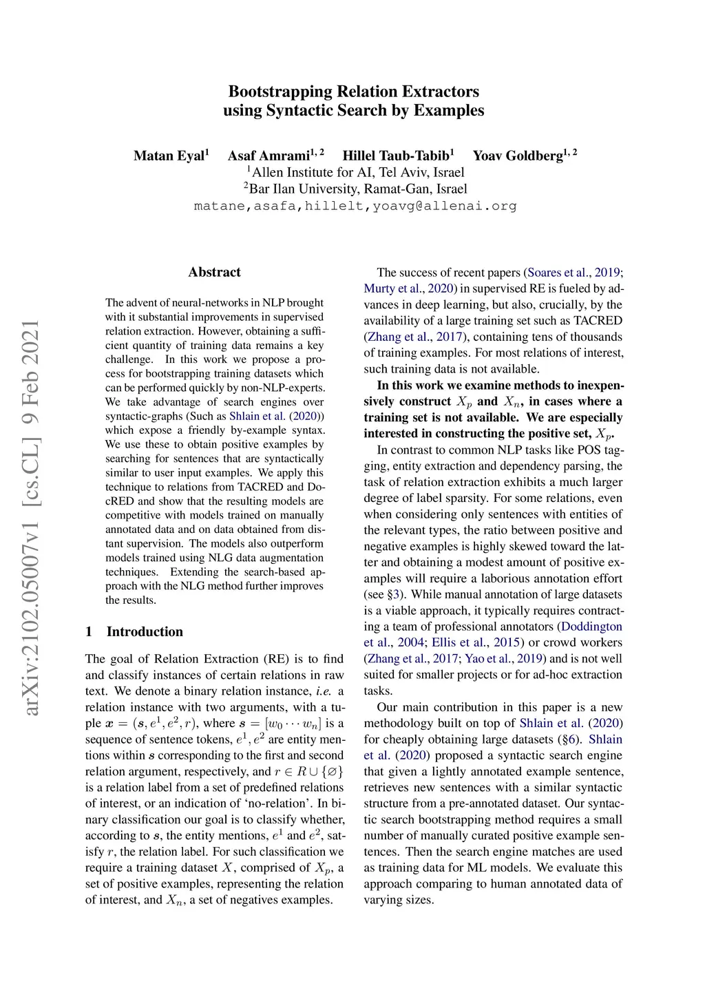 Bootstrapping Relation Extractors using Syntactic Search by Examples