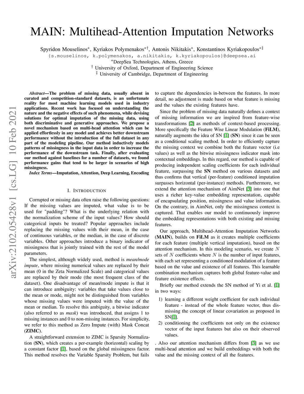 MAIN: Multihead-Attention Imputation Networks