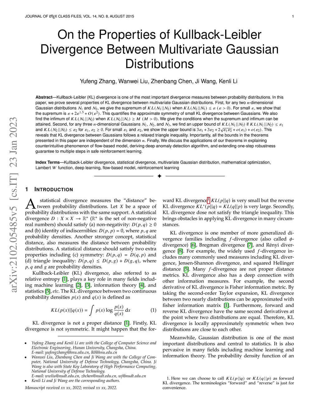 On the Properties of Kullback-Leibler Divergence Between Multivariate