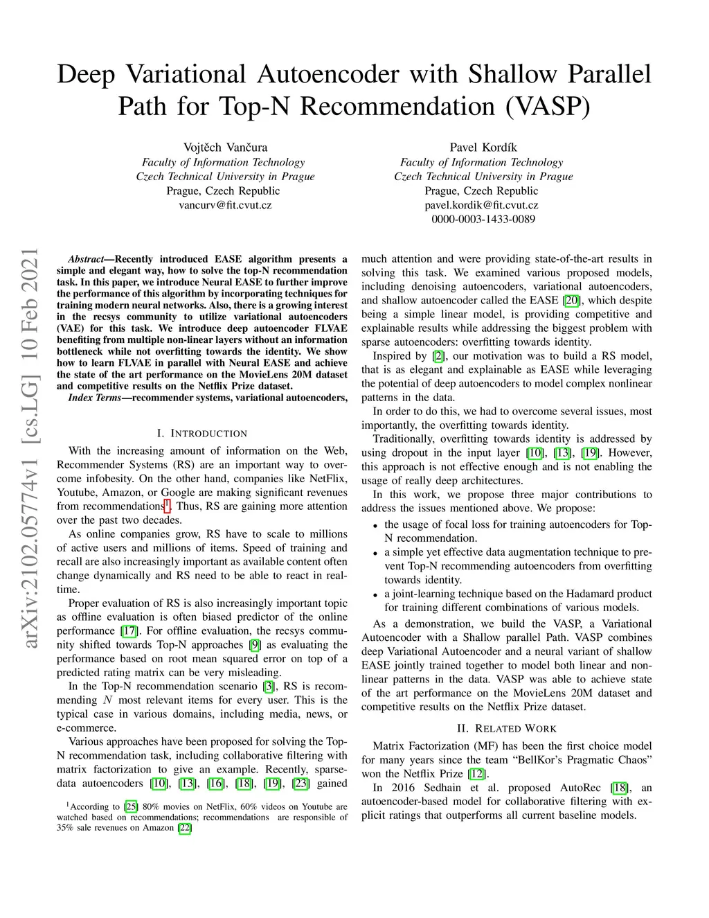 Deep Variational Autoencoder with Shallow Parallel Path for Top-N