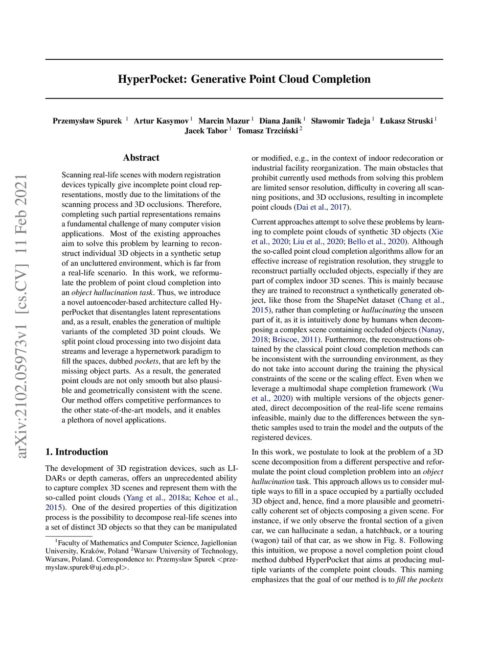 Scanning real-life scenes with modern registration devices typically give incomplete point cloud representations, mostly due to the limitations of the scanning process and 3D occlusions. Therefore, completing such partial representations remains a fundamental challenge of many computer vision applications. Most of the existing approaches aim to solve this problem by learning to reconstruct individual 3D objects in a synthetic setup of an uncluttered environment, which is far from a real-life scenario. In this work, we reformulate the problem of point cloud completion into an object hallucination task. Thus, we introduce a novel autoencoder-based architecture called HyperPocket that disentangles latent representations and, as a result, enables the generation of multiple variants of the completed 3D point clouds. We split point cloud processing into two disjoint data streams and leverage a hypernetwork paradigm to fill the spaces, dubbed pockets, that are left by the missing object parts. As a result, the generated point clouds are not only smooth but also plausible and geometrically consistent with the scene. Our method offers competitive performances to the other state-of-the-art models, and it enables a~plethora of novel applications.