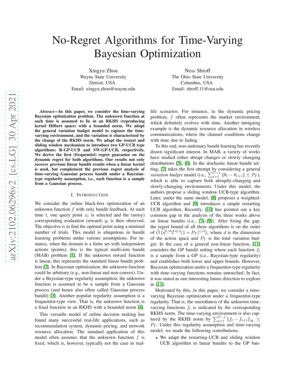 No-Regret Algorithms for Time-Varying Bayesian Optimization