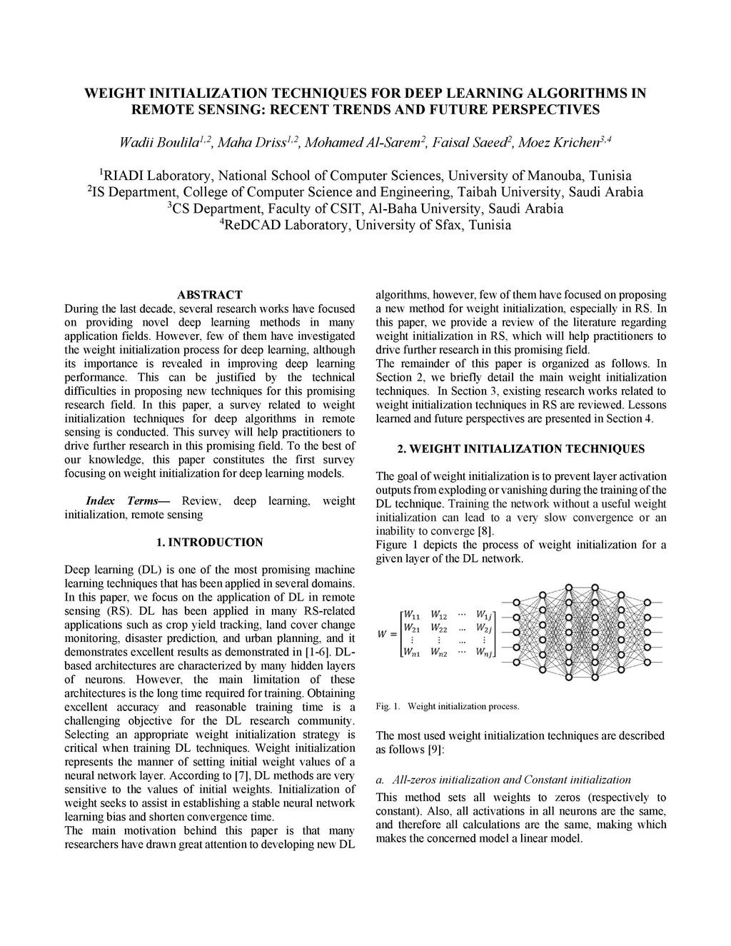 Weight Initialization Techniques for Deep Learning Algorithms in Remote