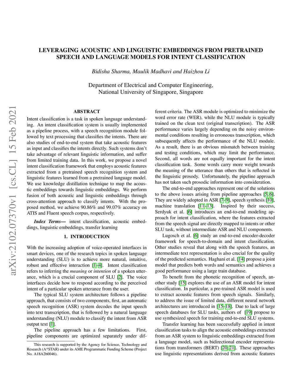Leveraging Acoustic and Linguistic Embeddings from Pretrained speech and