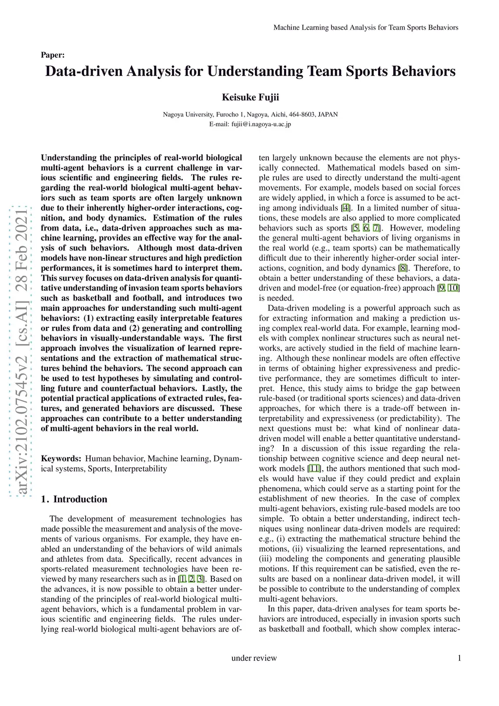 Understanding the principles of real-world biological multi-agent behaviors is a current challenge in various scientific and engineering fields. The rules regarding the real-world biological multi-agent behaviors such as team sports are often largely unknown due to their inherently higher-order interactions, cognition, and body dynamics. Estimation of the rules from data, i.e., data-driven approaches such as machine learning, provides an effective way for the analysis of such behaviors. Although most data-driven models have non-linear structures and high prediction performances, it is sometimes hard to interpret them. This survey focuses on data-driven analysis for quantitative understanding of invasion team sports behaviors such as basketball and football, and introduces two main approaches for understanding such multi-agent behaviors: (1) extracting easily interpretable features or rules from data and (2) generating and controlling behaviors in visually-understandable ways. The first approach involves the visualization of learned representations and the extraction of mathematical structures behind the behaviors. The second approach can be used to test hypotheses by simulating and controlling future and counterfactual behaviors. Lastly, the potential practical applications of extracted rules, features, and generated behaviors are discussed. These approaches can contribute to a better understanding of multi-agent behaviors in the real world.