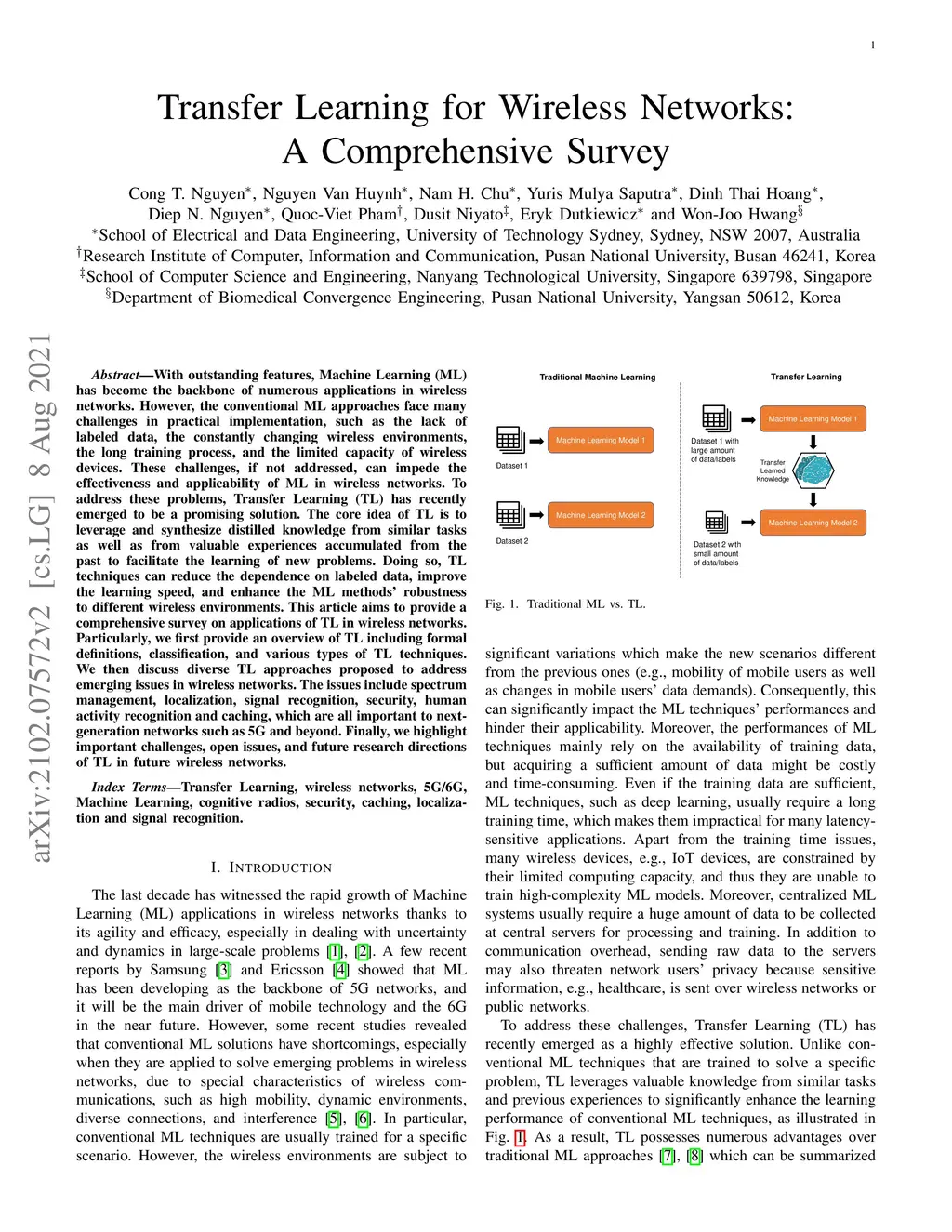 Transfer Learning for Future Wireless Networks: A Comprehensive Survey