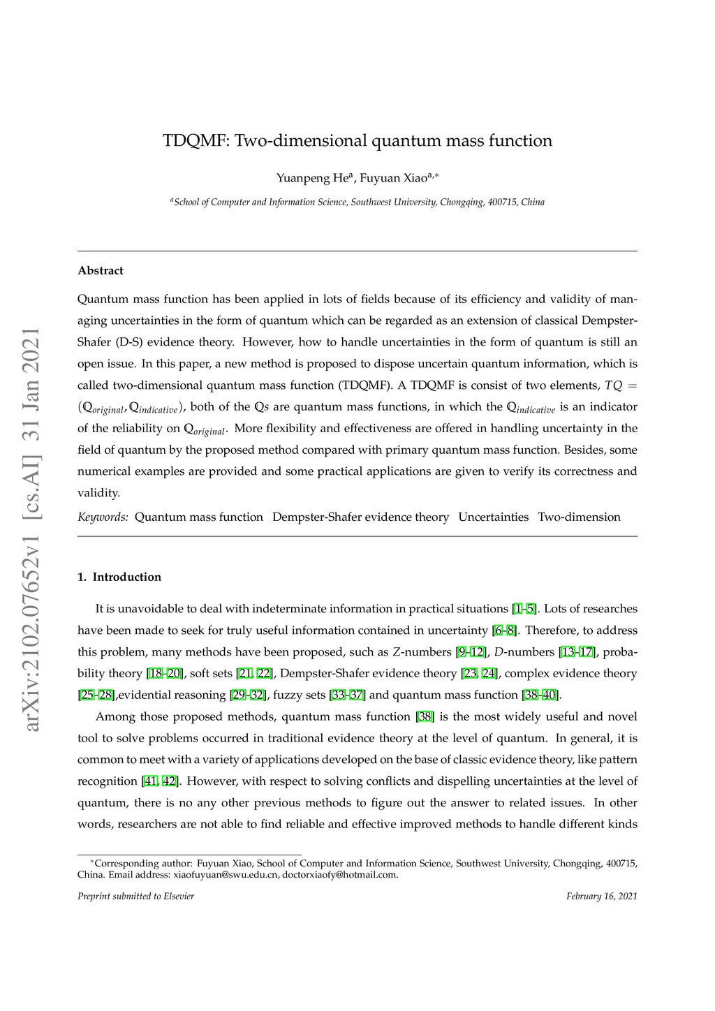 Quantum mass function has been applied in lots of fields because of its efficiency and validity of managing uncertainties in the form of quantum which can be regarded as an extension of classical Dempster-Shafer (D-S) evidence theory. However, how to handle uncertainties in the form of quantum is still an open issue. In this paper, a new method is proposed to dispose uncertain quantum information, which is called two-dimensional quantum mass function (TDQMF). A TDQMF is consist of two elements, TQ = (Qoriginal, Qindicative), both of the Qs are quantum mass functions, in which the Qindicative is an indicator of the reliability on Qoriginal. More flexibility and effectiveness are offered in handling uncertainty in the field of quantum by the proposed method compared with primary quantum mass function. Besides, some numerical examples are provided and some practical applications are given to verify its correctness and validity