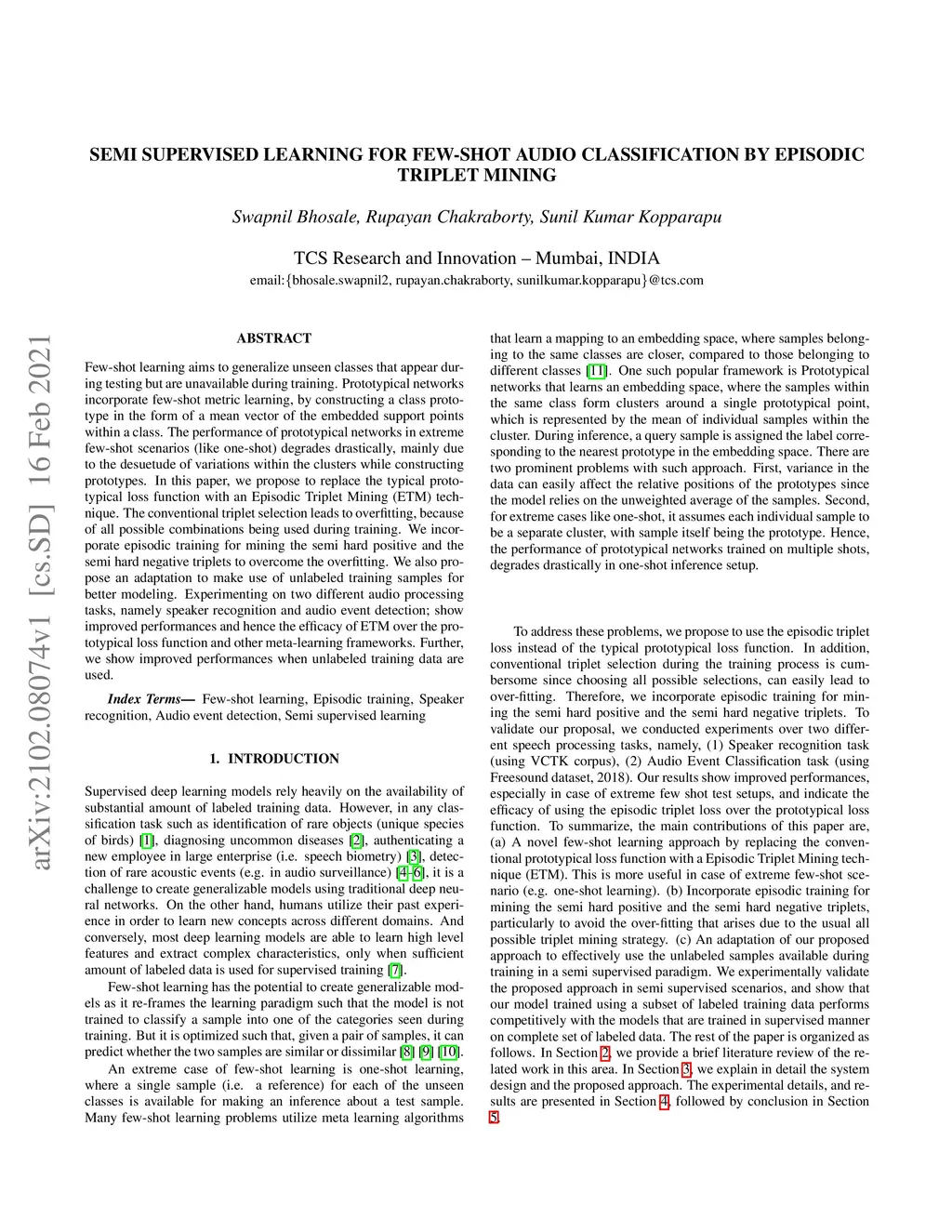Semi Supervised Learning For Few-shot Audio Classification By Episodic