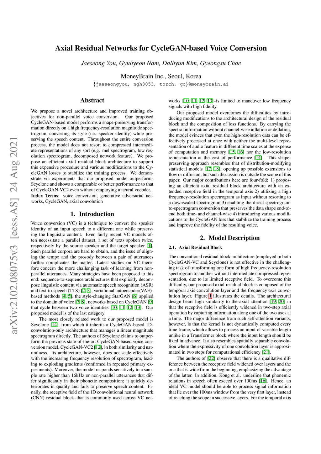 Axial Residual Networks for CycleGAN-based Voice Conversion