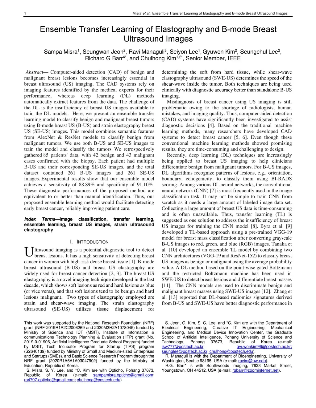 Ensemble Transfer Learning of Elastography and B-mode Breast Ultrasound