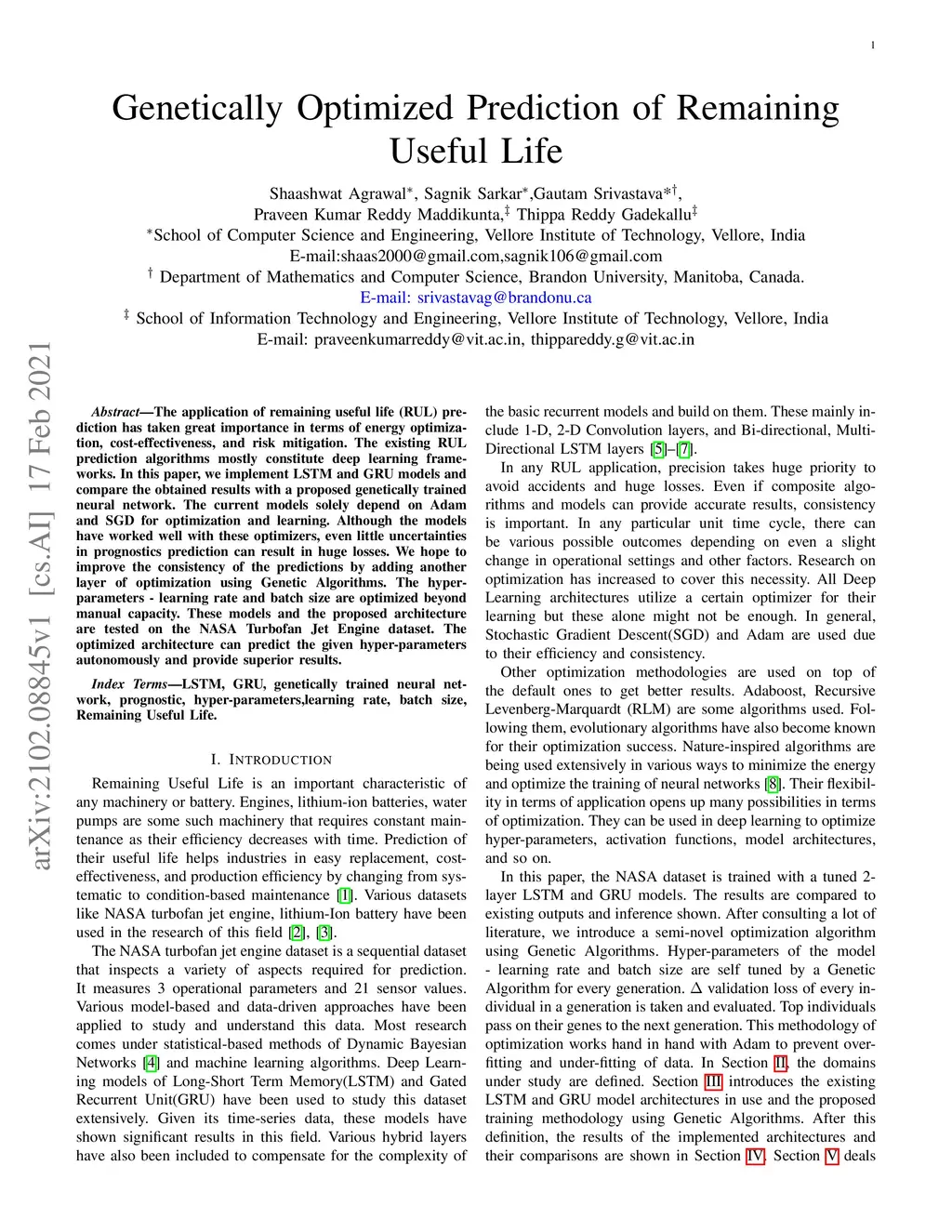 Genetically Optimized Prediction of Remaining Useful Life