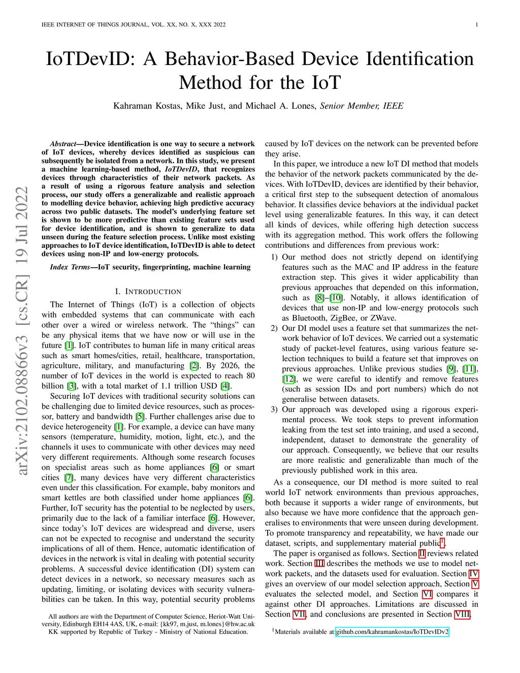 IoTDevID: A Behavior-Based Device Identification Method for the IoT