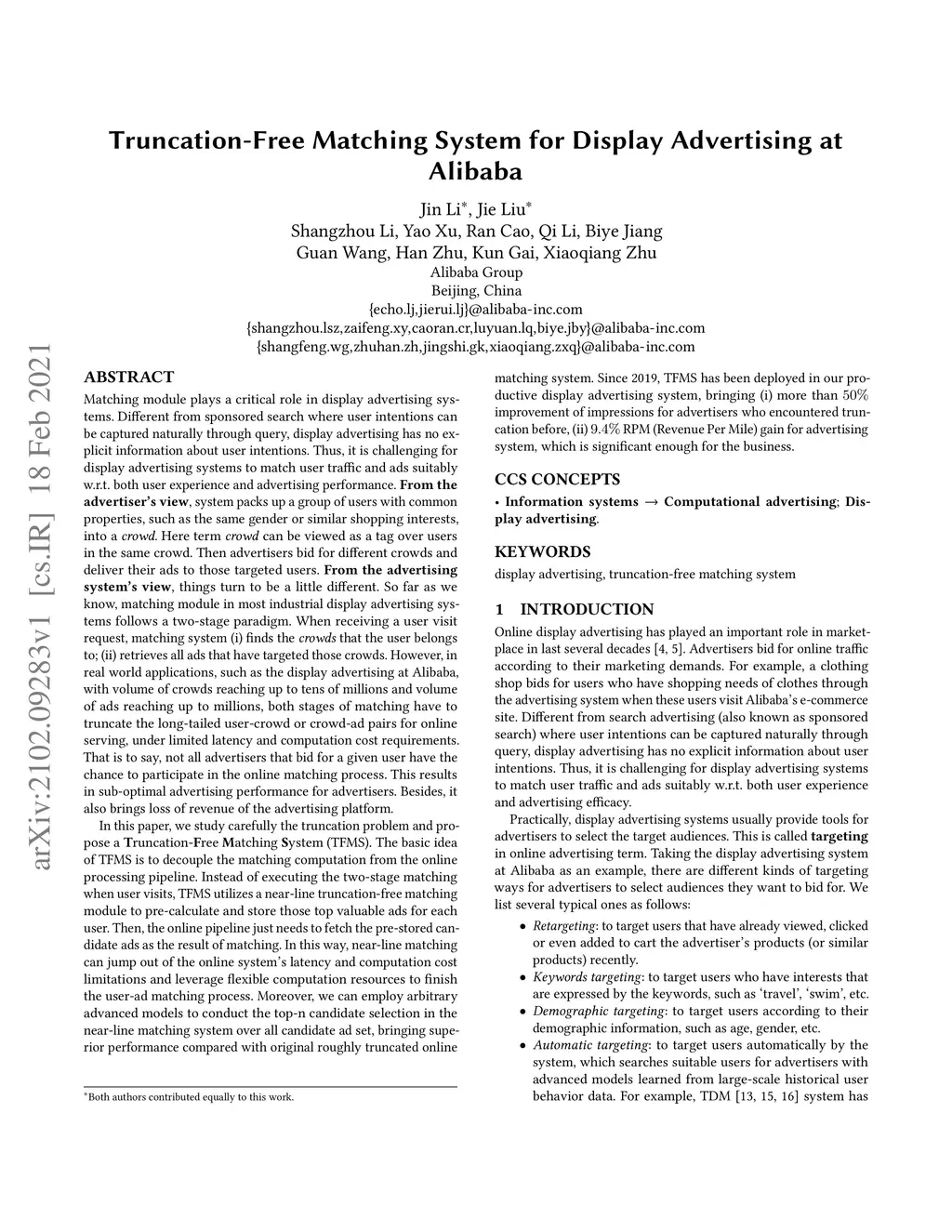 Truncation-Free Matching System for Display Advertising at Alibaba