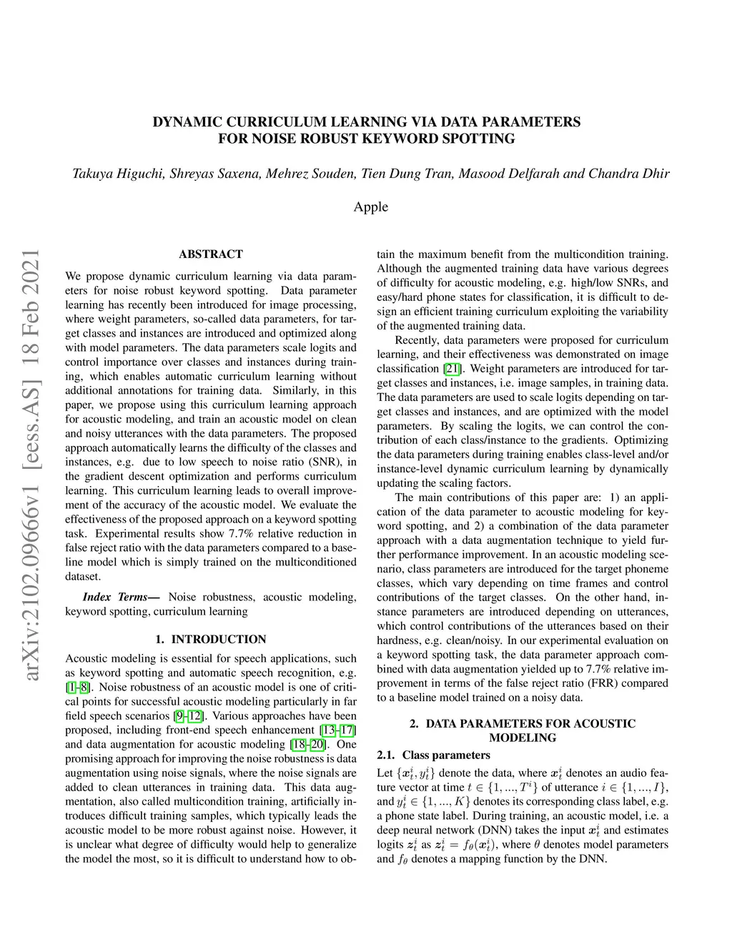 Dynamic curriculum learning via data parameters for noise robust keyword