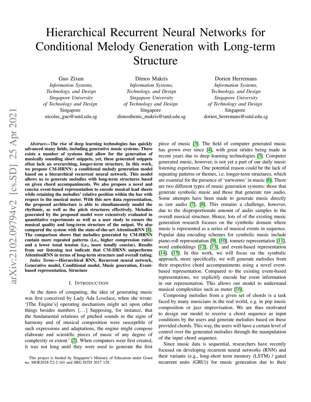 Hierarchical Recurrent Neural Networks for Conditional Melody Generation