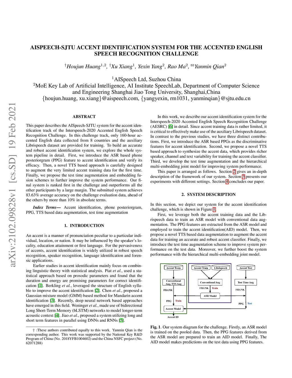 This paper describes the AISpeech-SJTU system for the accent identification track of the Interspeech-2020 Accented English Speech Recognition Challenge. In this challenge track, only 160-hour accented English data collected from 8 countries and the auxiliary Librispeech dataset are provided for training. To build an accurate and robust accent identification system, we explore the whole system pipeline in detail. First, we introduce the ASR based phone posteriorgram (PPG) feature to accent identification and verify its efficacy. Then, a novel TTS based approach is carefully designed to augment the very limited accent training data for the first time. Finally, we propose the test time augmentation and embedding fusion schemes to further improve the system performance. Our final system is ranked first in the challenge and outperforms all the other participants by a large margin. The submitted system achieves 83.63\% average accuracy on the challenge evaluation data, ahead of the others by more than 10\% in absolute terms.
