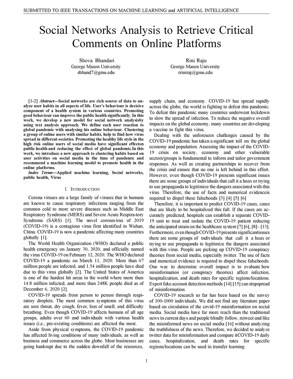 Social Networks Analysis to Retrieve Critical Comments on Online