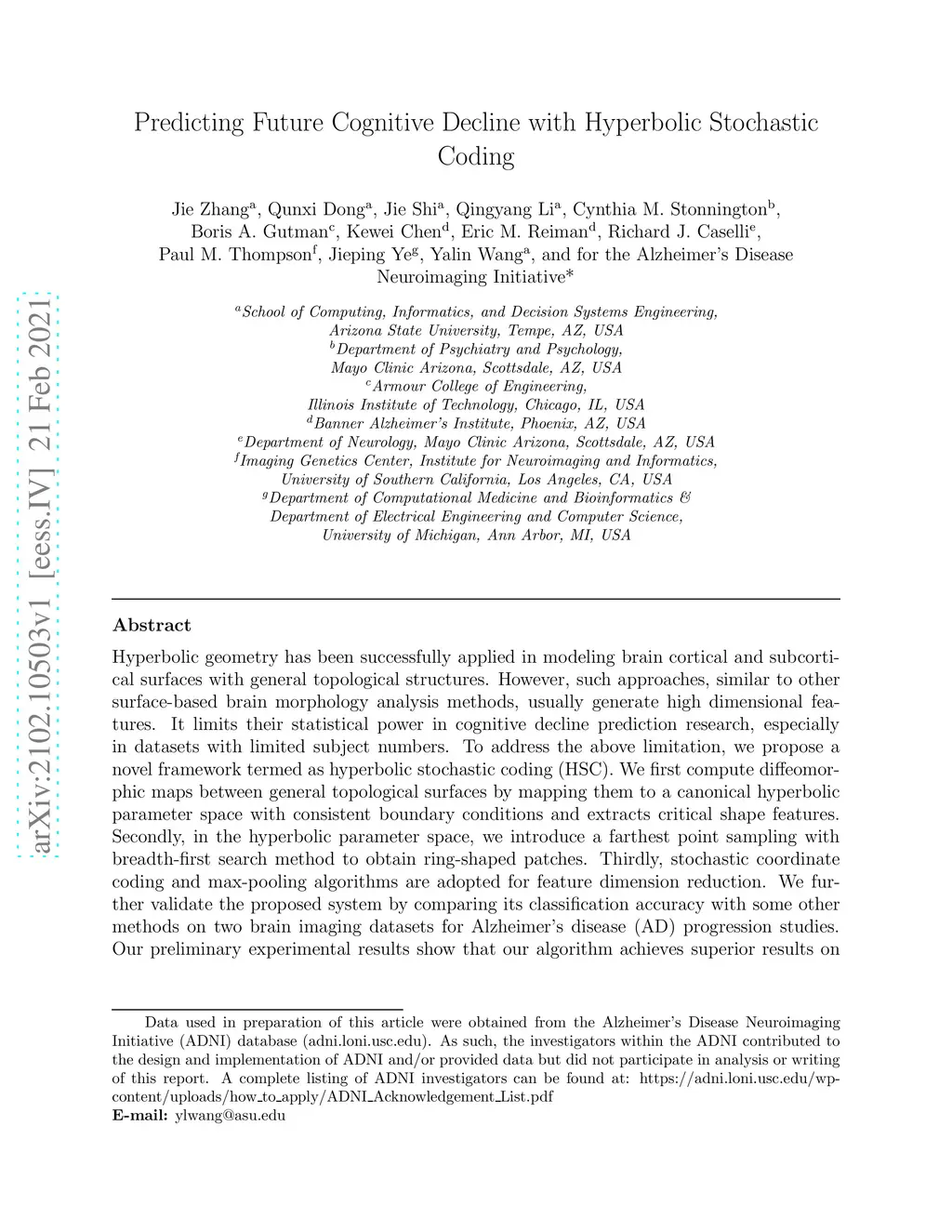 Predicting Future Cognitive Decline with Hyperbolic Stochastic Coding
