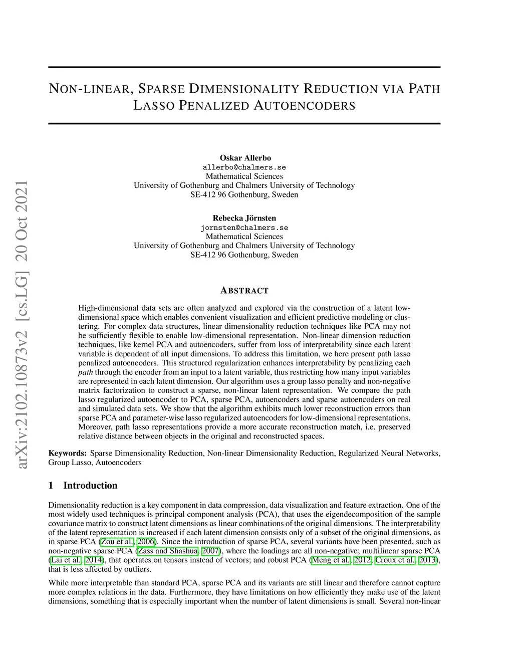 Non-linear, Sparse Dimensionality Reduction via Path Lasso Penalized