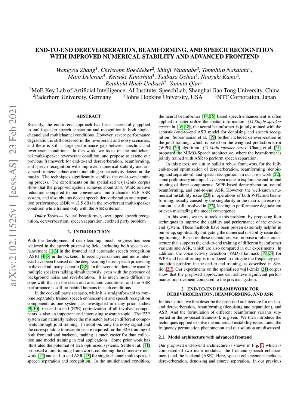 End-to-End Dereverberation, Beamforming, and Speech Recognition with