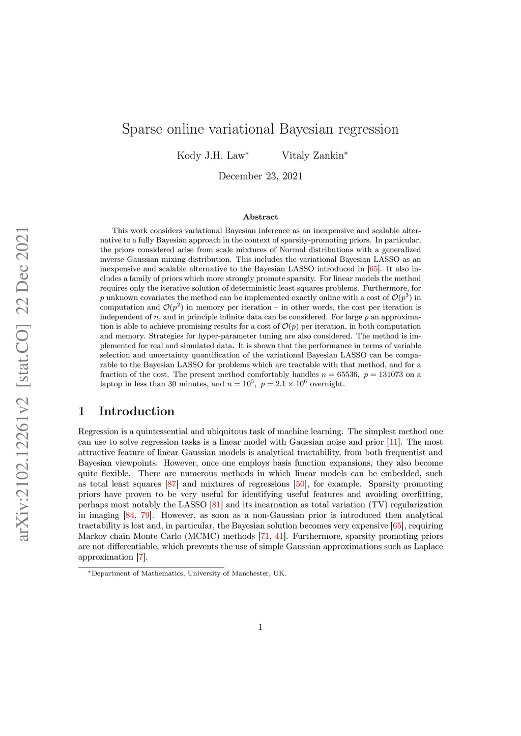 Sparse online variational Bayesian regression