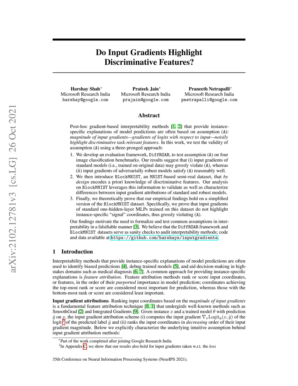 Do Input Gradients Highlight Discriminative Features?