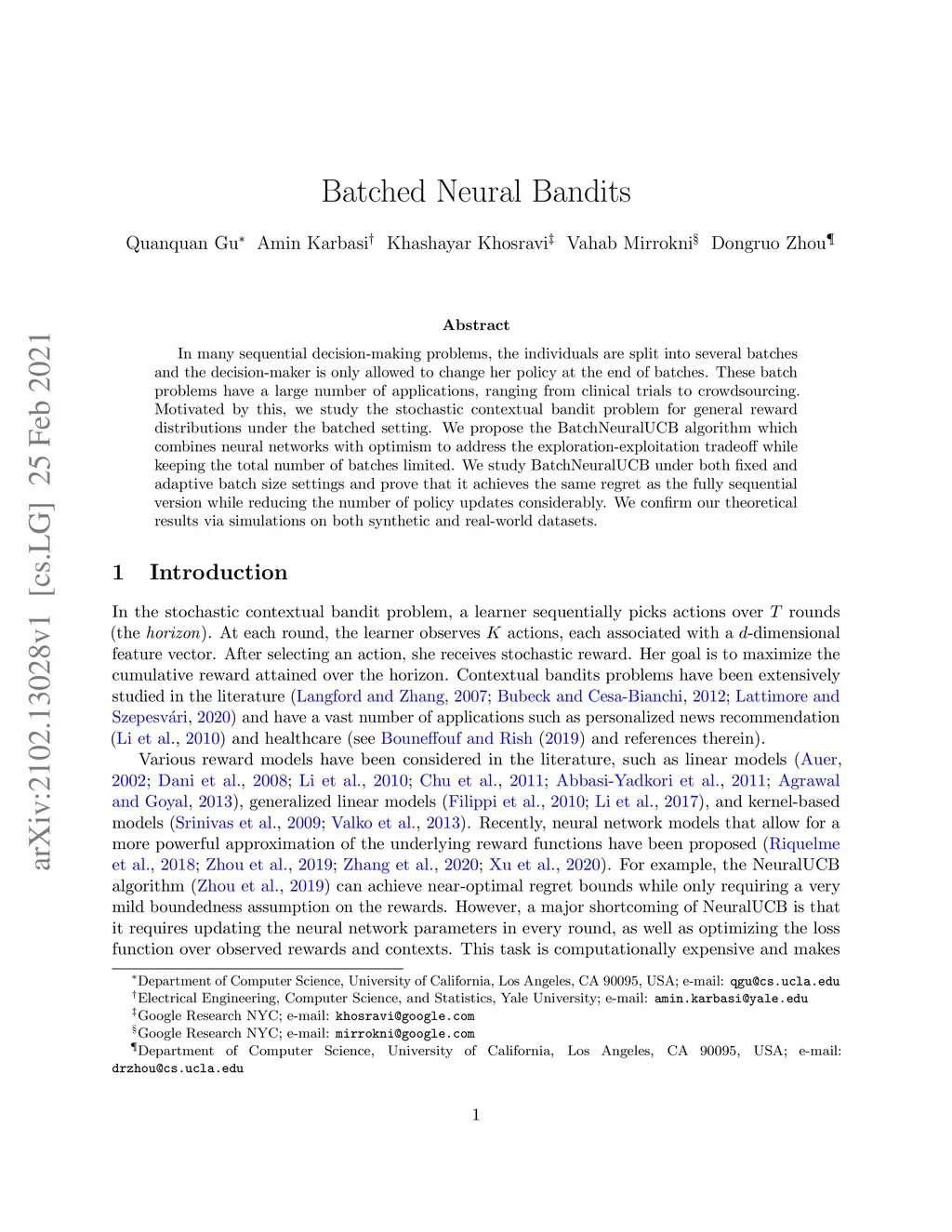 Batched Neural Bandits