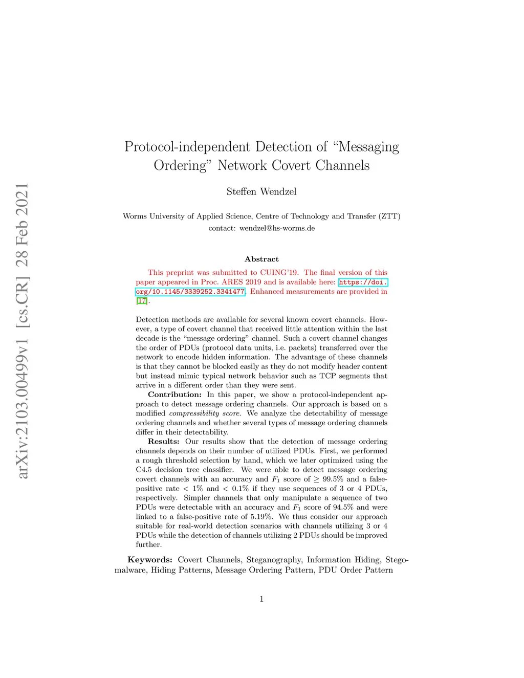 Protocol-independent Detection of "Messaging Ordering" Network Covert