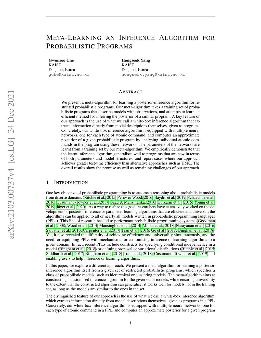 Meta-Learning an Inference Algorithm for Probabilistic Programs