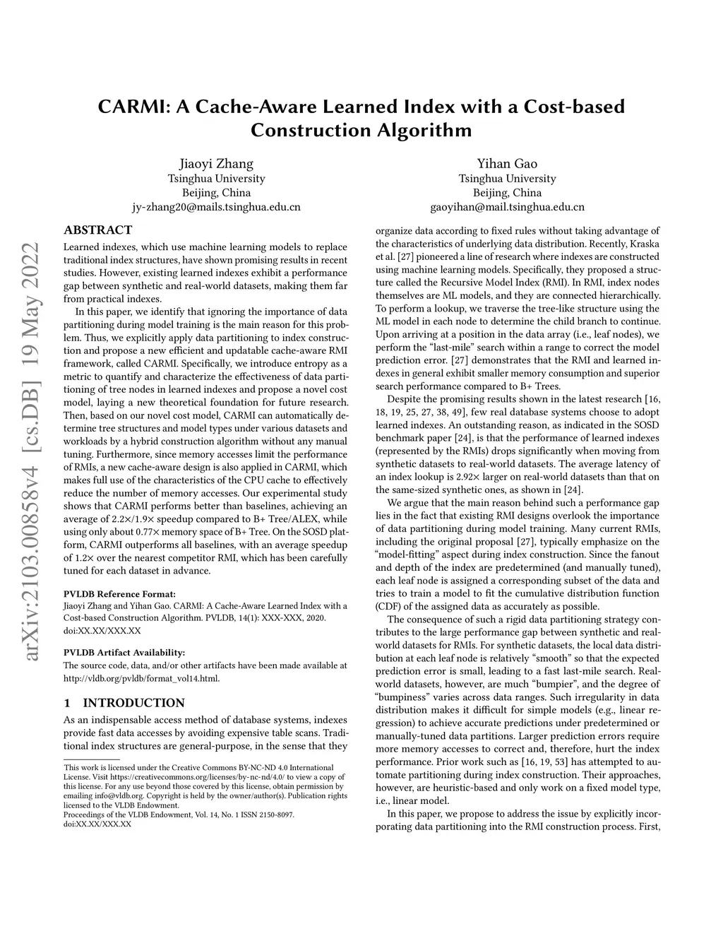 CARMI: A Cache-Aware Learned Index with a Cost-based Construction