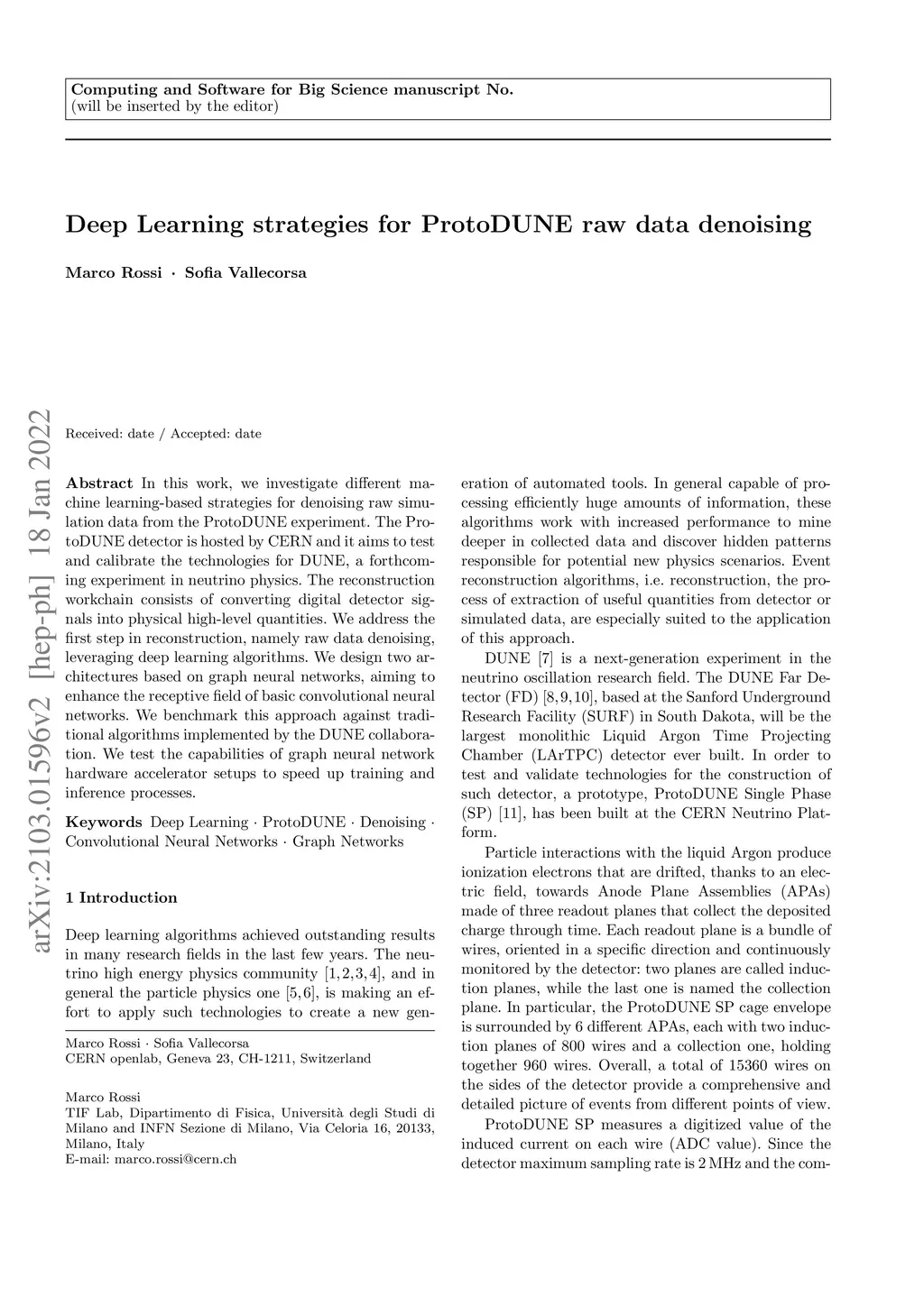 In this work, we investigate different machine learning-based strategies for denoising raw simulation data from the ProtoDUNE experiment. The ProtoDUNE detector is hosted by CERN and it aims to test and calibrate the technologies for DUNE, a forthcoming experiment in neutrino physics. The reconstruction workchain consists of converting digital detector signals into physical high-level quantities. We address the first step in reconstruction, namely raw data denoising, leveraging deep learning algorithms. We design two architectures based on graph neural networks, aiming to enhance the receptive field of basic convolutional neural networks. We benchmark this approach against traditional algorithms implemented by the DUNE collaboration. We test the capabilities of graph neural network hardware accelerator setups to speed up training and inference processes.