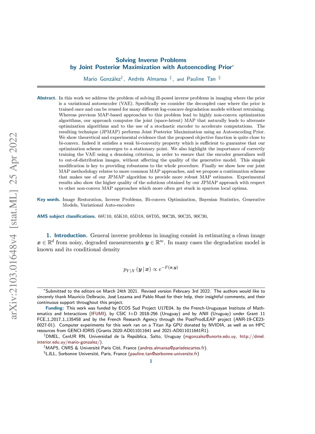 Solving Inverse Problems by Joint Posterior Maximization with