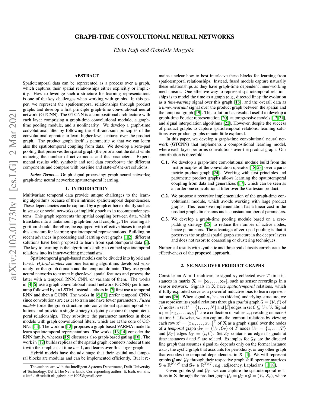 Spatiotemporal data can be represented as a process over a graph, which captures their spatial relationships either explicitly or implicitly. How to leverage such a structure for learning representations is one of the key challenges when working with graphs. In this paper, we represent the spatiotemporal relationships through product graphs and develop a first principle graph-time convolutional neural network (GTCNN). The GTCNN is a compositional architecture with each layer comprising a graph-time convolutional module, a graph-time pooling module, and a nonlinearity. We develop a graph-time convolutional filter by following the shift-and-sum principles of the convolutional operator to learn higher-level features over the product graph. The product graph itself is parametric so that we can learn also the spatiotemporal coupling from data. We develop a zero-pad pooling that preserves the spatial graph (the prior about the data) while reducing the number of active nodes and the parameters. Experimental results with synthetic and real data corroborate the different components and compare with baseline and state-of-the-art solutions.