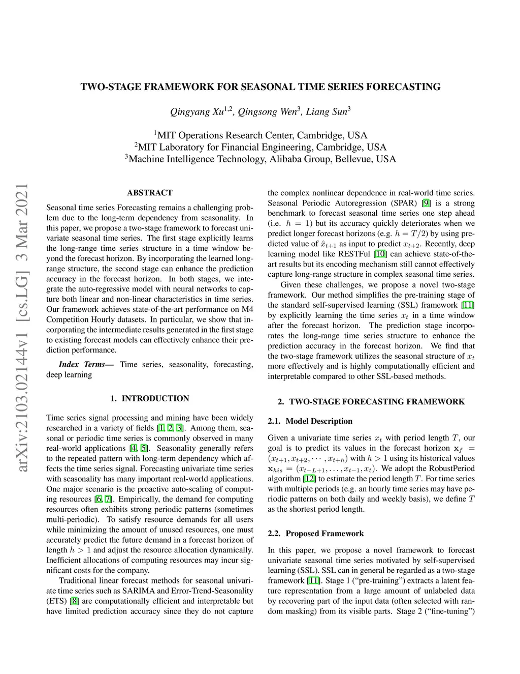 Two-Stage Framework for Seasonal Time Series Forecasting