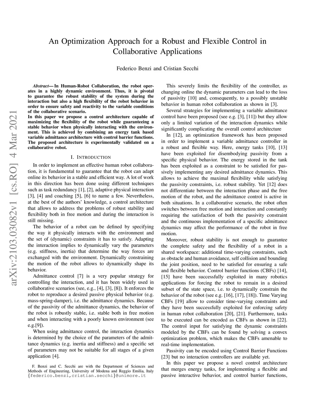 In Human-Robot Collaboration, the robot operates in a highly dynamic environment. Thus, it is pivotal to guarantee the robust stability of the system during the interaction but also a high flexibility of the robot behavior in order to ensure safety and reactivity to the variable conditions of the collaborative scenario. In this paper we propose a control architecture capable of maximizing the flexibility of the robot while guaranteeing a stable behavior when physically interacting with the environment. This is achieved by combining an energy tank based variable admittance architecture with control barrier functions. The proposed architecture is experimentally validated on a collaborative robot.