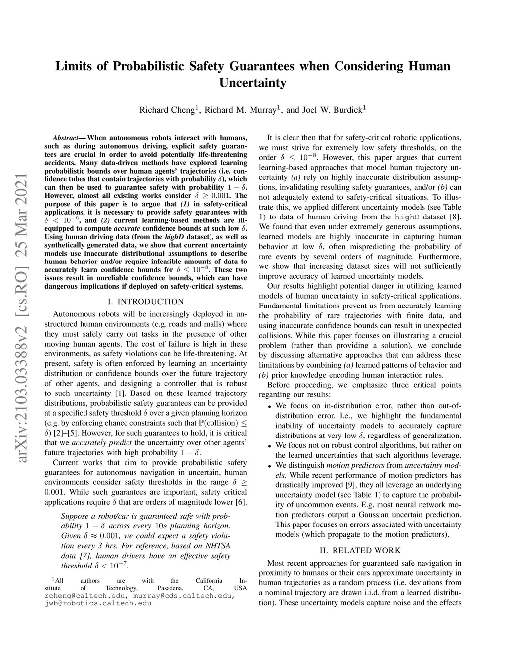 When autonomous robots interact with humans, such as during autonomous driving, explicit safety guarantees are crucial in order to avoid potentially life-threatening accidents. Many data-driven methods have explored learning probabilistic bounds over human agents' trajectories (i.e. confidence tubes that contain trajectories with probability ), which can then be used to guarantee safety with probability . However, almost all existing works consider . The purpose of this paper is to argue that (1) in safety-critical applications, it is necessary to provide safety guarantees with , and (2) current learning-based methods are ill-equipped to compute accurate confidence bounds at such low . Using human driving data (from the highD dataset), as well as synthetically generated data, we show that current uncertainty models use inaccurate distributional assumptions to describe human behavior and/or require infeasible amounts of data to accurately learn confidence bounds for . These two issues result in unreliable confidence bounds, which can have dangerous implications if deployed on safety-critical systems.