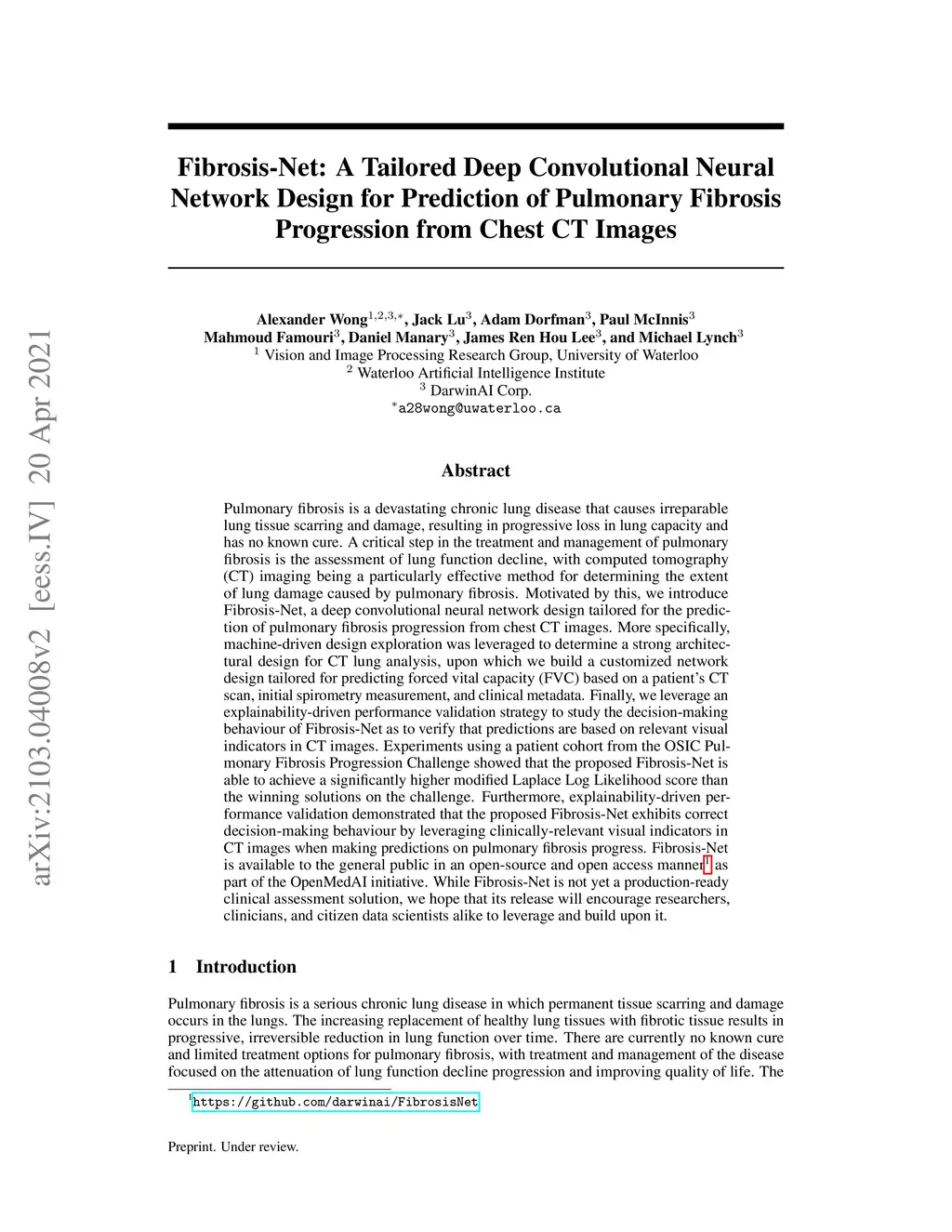 Pulmonary fibrosis is a devastating chronic lung disease that causes irreparable lung tissue scarring and damage, resulting in progressive loss in lung capacity and has no known cure. A critical step in the treatment and management of pulmonary fibrosis is the assessment of lung function decline, with computed tomography (CT) imaging being a particularly effective method for determining the extent of lung damage caused by pulmonary fibrosis. Motivated by this, we introduce Fibrosis-Net, a deep convolutional neural network design tailored for the prediction of pulmonary fibrosis progression from chest CT images. More specifically, machine-driven design exploration was leveraged to determine a strong architectural design for CT lung analysis, upon which we build a customized network design tailored for predicting forced vital capacity (FVC) based on a patient's CT scan, initial spirometry measurement, and clinical metadata. Finally, we leverage an explainability-driven performance validation strategy to study the decision-making behaviour of Fibrosis-Net as to verify that predictions are based on relevant visual indicators in CT images. Experiments using a patient cohort from the OSIC Pulmonary Fibrosis Progression Challenge showed that the proposed Fibrosis-Net is able to achieve a significantly higher modified Laplace Log Likelihood score than the winning solutions on the challenge. Furthermore, explainability-driven performance validation demonstrated that the proposed Fibrosis-Net exhibits correct decision-making behaviour by leveraging clinically-relevant visual indicators in CT images when making predictions on pulmonary fibrosis progress. While Fibrosis-Net is not yet a production-ready clinical assessment solution, we hope that its release in open source manner will encourage researchers, clinicians, and citizen data scientists alike to leverage and build upon it.