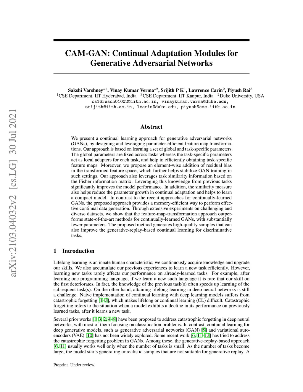 CAM-GAN: Continual Adaptation Modules for Generative Adversarial