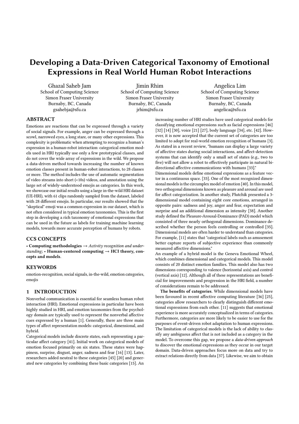Emotions are reactions that can be expressed through a variety of social signals. For example, anger can be expressed through a scowl, narrowed eyes, a long stare, or many other expressions. This complexity is problematic when attempting to recognize a human's expression in a human-robot interaction: categorical emotion models used in HRI typically use only a few prototypical classes, and do not cover the wide array of expressions in the wild. We propose a data-driven method towards increasing the number of known emotion classes present in human-robot interactions, to 28 classes or more. The method includes the use of automatic segmentation of video streams into short (<10s) videos, and annotation using the large set of widely-understood emojis as categories. In this work, we showcase our initial results using a large in-the-wild HRI dataset (UE-HRI), with 61 clips randomly sampled from the dataset, labeled with 28 different emojis. In particular, our results showed that the "skeptical" emoji was a common expression in our dataset, which is not often considered in typical emotion taxonomies. This is the first step in developing a rich taxonomy of emotional expressions that can be used in the future as labels for training machine learning models, towards more accurate perception of humans by robots.