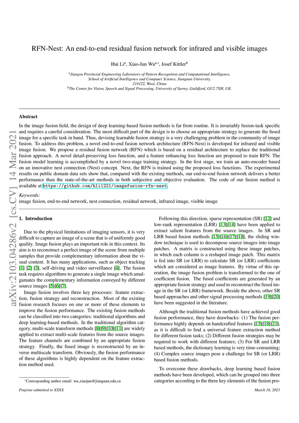 RFN-Nest: An end-to-end residual fusion network for infrared and visible