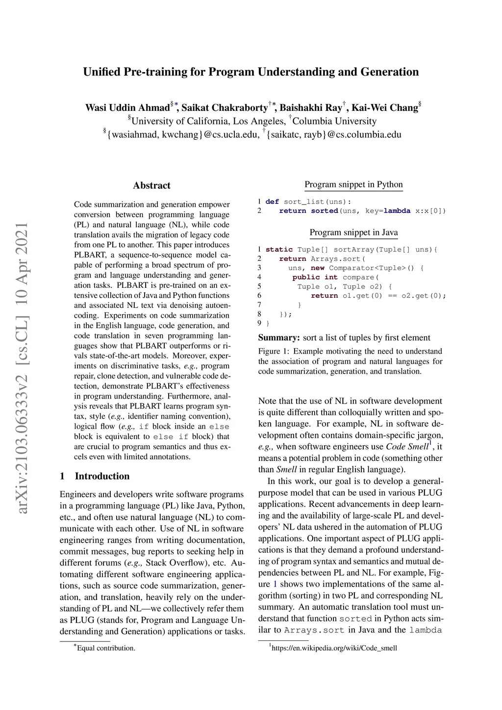 Unified Pre-training for Program Understanding and Generation