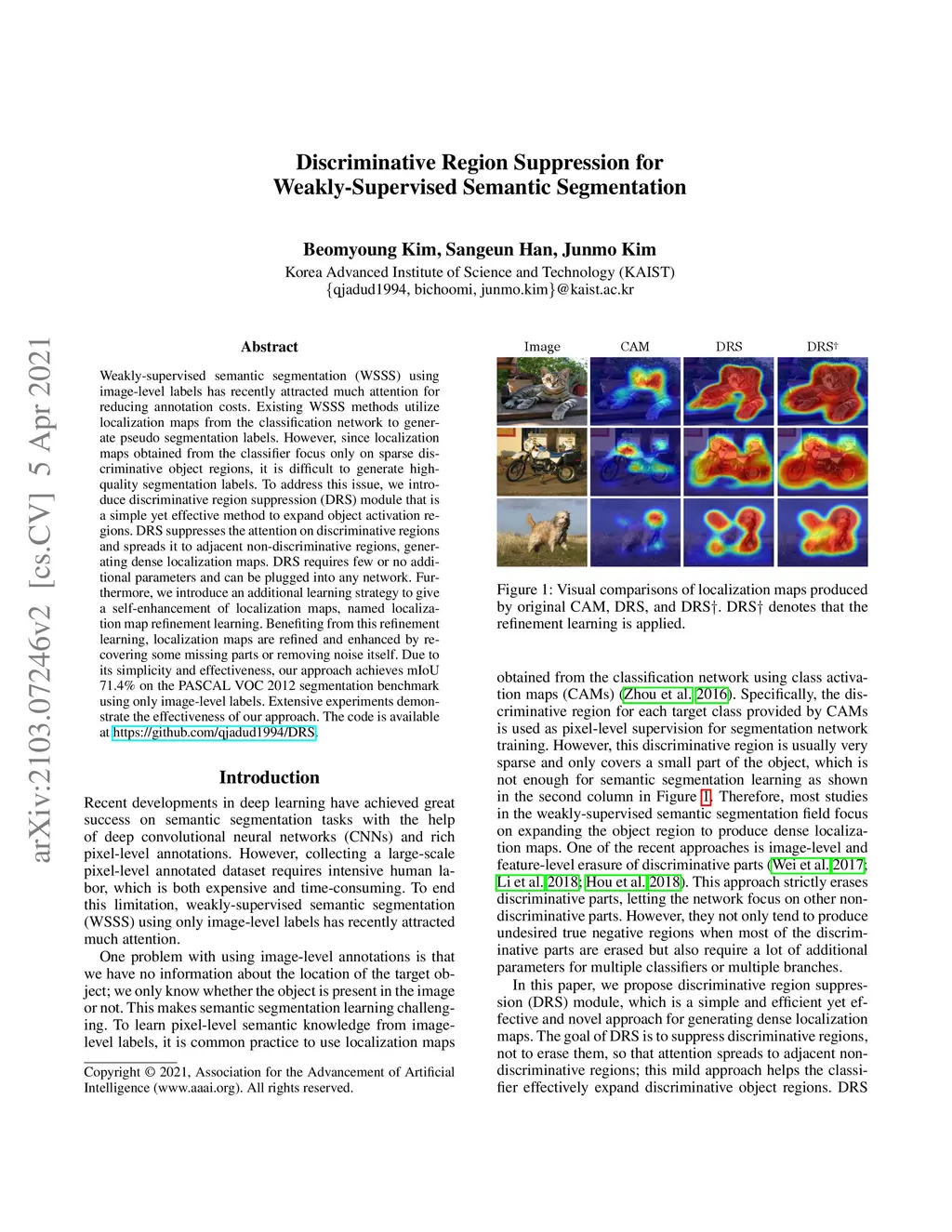 Discriminative Region Suppression for Weakly-Supervised Semantic