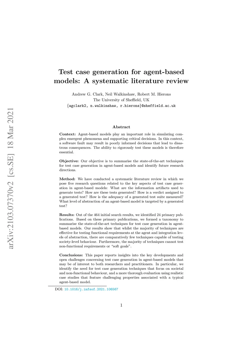 Test case generation for agent-based models: A systematic literature